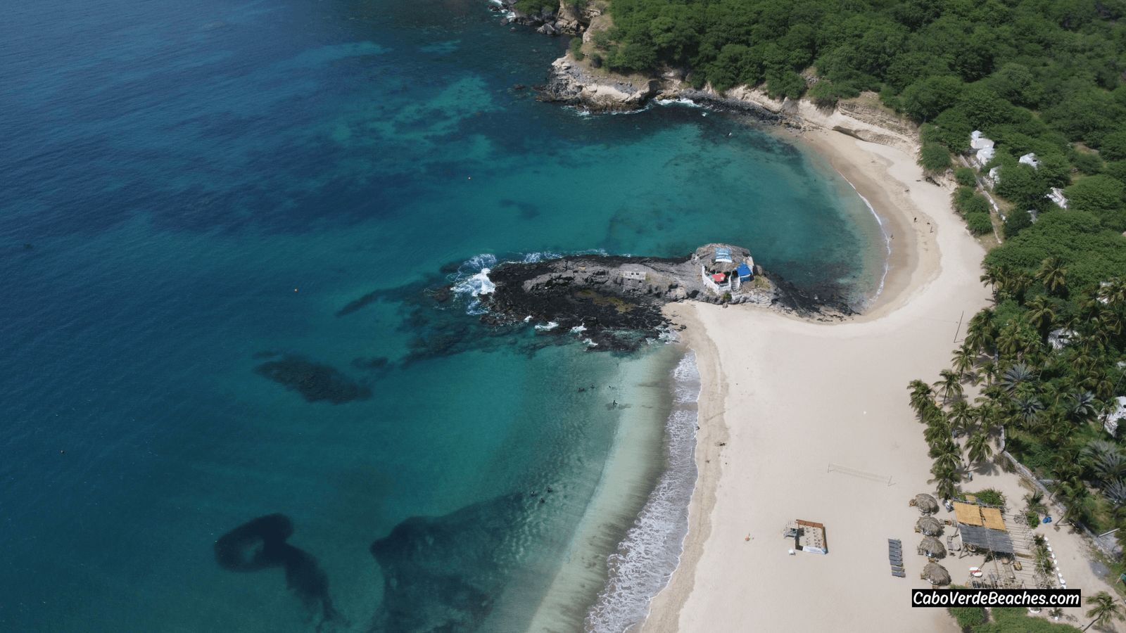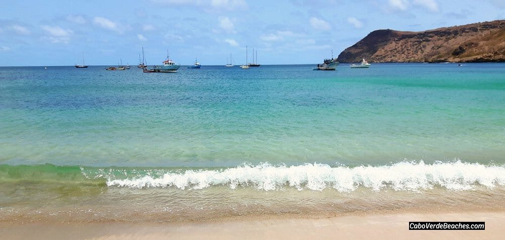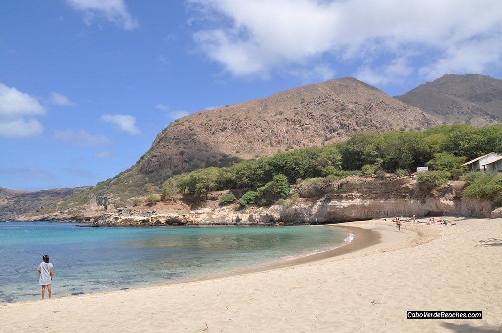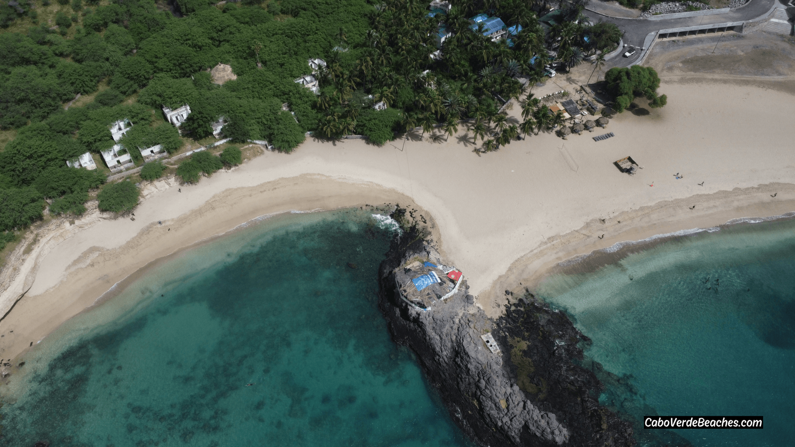 Tarrafal Beach features fine, white sand—a rare sight in volcanic regions—and clear, turquoise waters that are calm and perfect for swimming.
