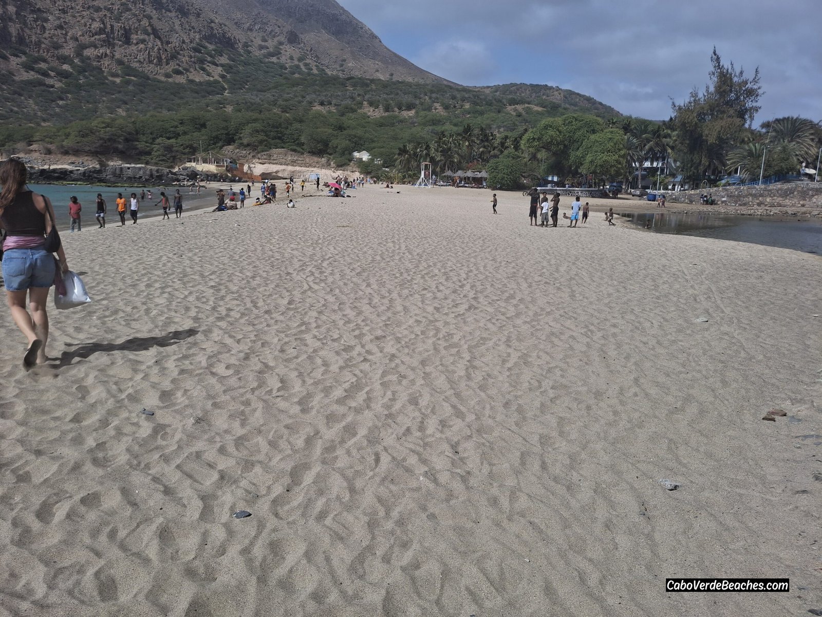 Tarrafal Beach is a tropical escape, famous for its soft white sand and crystal-clear waters; however, pebbles are present along the shoreline, adding a rugged touch to the landscape. Framed by rugged mountains and swaying palm trees, the beach is a peaceful retreat with calm waters, making it especially kids-friendly and ideal for swimming, sunbathing, and snorkeling. Unlike many volcanic beaches in Cape Verde, Tarrafal Beach stands out for its light-colored sand and its family-friendly, welcoming atmosphere.